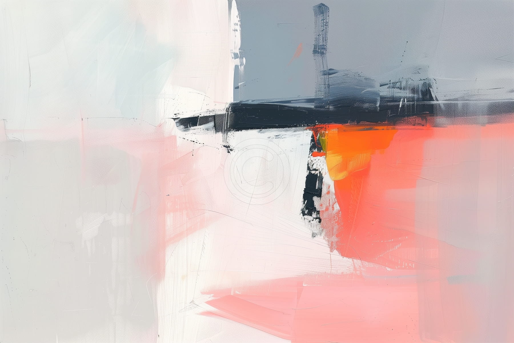 Dieses abstrakte Gemälde mit dem Titel Der Triumph des Lichts zeigt einen starken Kontrast zwischen dunklen und hellen Bereichen. Tiefes Schwarz trifft auf leuchtendes Orange, vor einem weichen Hintergrund aus Rosa- und Weißtönen. Die Komposition vermittelt die Idee von zwei gegensätzlichen Kräften, bei denen die hellen Farben nach und nach stärker werden als die dunklen. Sichtbare Pinselstriche und fließende Texturen geben dem Bild ein Gefühl von Bewegung. Insgesamt wirkt das Bild energievoll und vermittelt die Idee von Veränderung und Neubeginn.