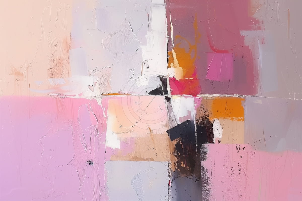 Ce tableau abstrait intitulé "Lumière sur la Mer" montre le lien entre la lumière et l’eau avec des roses doux, des beiges chauds et des noirs profonds. Les coups de pinceau en relief et les formes qui se croisent rappellent le soleil qui brille sur la surface de l’océan. Le contraste entre les zones sombres et claires donne de la profondeur et un léger mouvement. L’ensemble est calme mais vivant. L’œuvre propose une vision simple de la lumière dans la nature. Elle invite le spectateur à s’arrêter et à regarder avec attention.